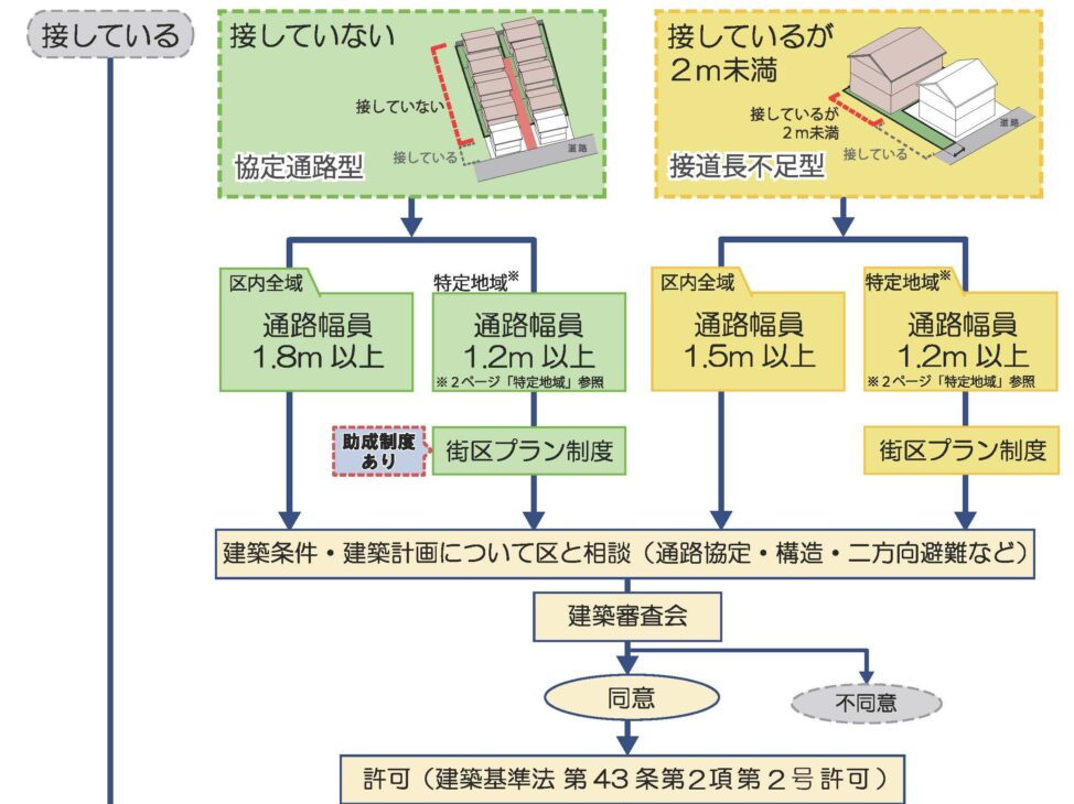 首都研では、無接道敷地での建替えを促進するため、建築審査会委員の助言を得ながら、建築基準法43条但し書き許可の新たな基準及び効果的な制度創設に向けた支援を行いました。